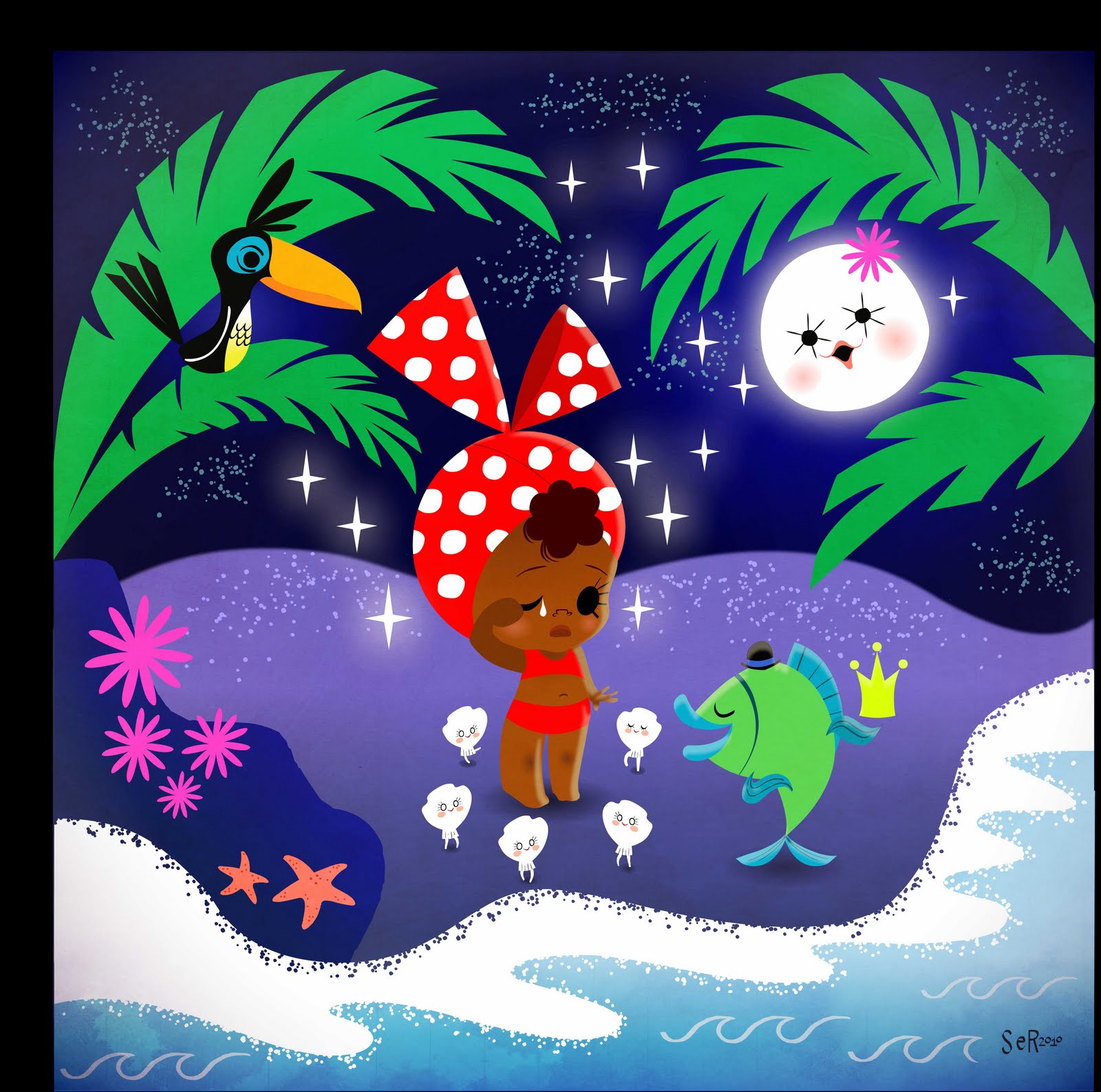 A handful of artists were picked out to do their versions of a song given to them. Mine is "Cucurumbe", a song about a little girl who doesn't want to be black, she wants to be white like the moon, the shells on the beach and the foam on the shoreline. One day a dapper little fish wearing a bowler hat comes up to her and exclaims " Goodness child! Can't you see that you are beautiful as you are?"